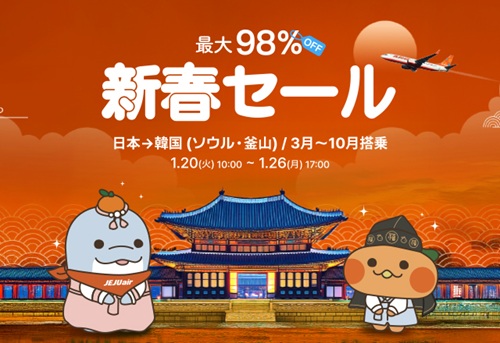 ★チェジュ航空、最大98%割引の「新春セール」開始