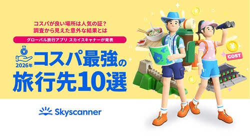 グローバル旅行アプリ「スカイスキャナー」は、航空券の平均価格下落率に関する最新データをもとに「2026年コスパ最強の旅行先10選」を発表した。コストパフォーマンスが高い旅先として挙がったのは、廈門市(中国)、ヴィエンチャン(ラオス)、済州(韓国)、カティクラン(フィリピン)、福州(中国)、フーコック(ベトナム)、コタキナバル(マレーシア)、スラバヤ(インドネシア)、プノンペン(カンボジア)、ムンバイ(インド)の10都市だった。