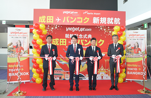2月2日には成田空港で就航記念セレモニーを開催した。式典でピンヨット バイスプレジデントは「成田線の就航は日本とタイとの結びつきをより強固なものとするとともに、国際的な事業展開における新たな一歩となることを確信している。また、成田線には新機材のボーイング737-8型機を導入するが、同機材は当社のネットワークの拡大を支え、アジア地域における持続的な事業成長を実現するために極めて重要な役割を担っている」と述べた。
