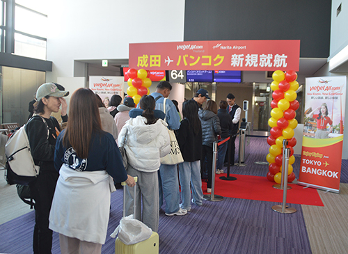 また、来賓としてあいさつしたタイ国政府観光庁のセークサン・スィープライワン東京事務所所長は「今回の就航は単なる航路の新設にとどまらず、日本とタイの距離を一層近づける架け橋となる。この出来事は、われわれがともに歩んできた揺るぎない協力関係のたまものだ。われわれは2WAYツーリズムを力強く推し進めようとしているが、この重要な時期に新路線が就航し、バンコクやその先に広がるタイの各地にシームレスにつながることが可能となった。新路線をきっかけに多くの人が日本とタイでさまざまな体験を楽しんでくれることを心から期待している」と述べた。