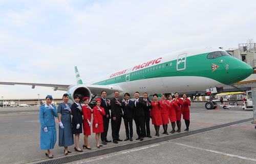 キャセイパシフィック航空(CPA)はこのほど、創立80周年を記念した特別塗装のエアバスA350-900型機の日本初飛来を記念し、成田空港でお披露目イベントを開催した。