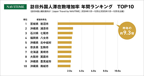 ナビタイム、2025年の市区町村別滞在増加率を発表 ナビゲー…