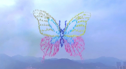 カラースモークで演出、空にメッセージやアート ドローンショーの企画・運営を…