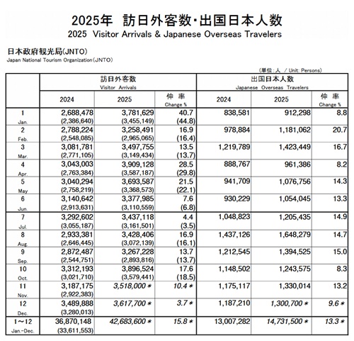 前年からは13.3%増もコロナ禍比73%水準 日本政府観光…