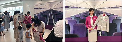 ピーチの制服着用体験、パネル前で記念写真も セレッソ大阪は10月20日、来…