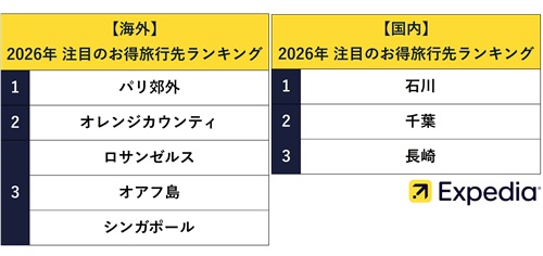 ★エクスペディア、お得・穴場旅行先ランキング発表