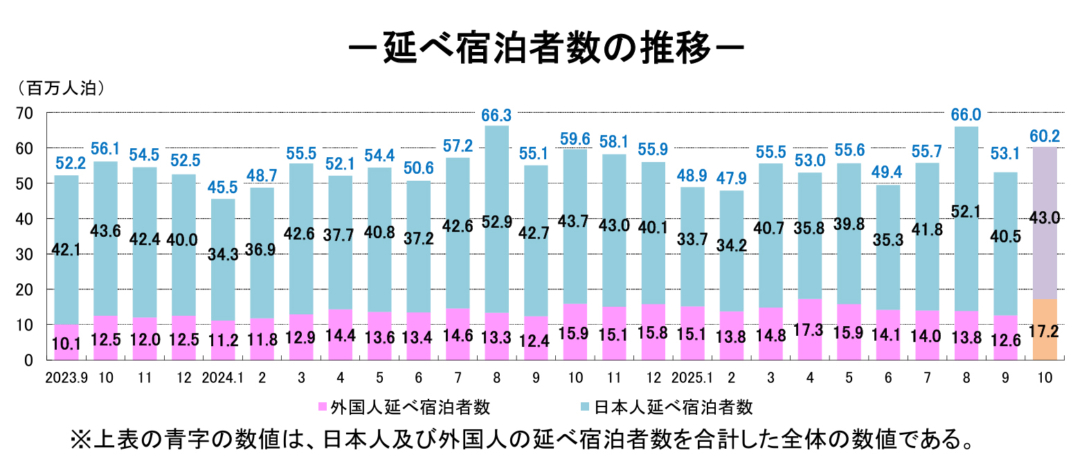 ★10月の国内延べ宿泊者数は1.1%増6025万人泊