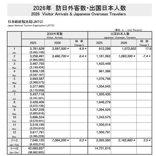 旧正月の旅行需要増などで2月として過去最高 日本政府観光局…