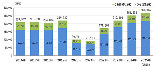 国内旅行消費額は6.4%増、26.7兆円 観光庁の旅行・観光…