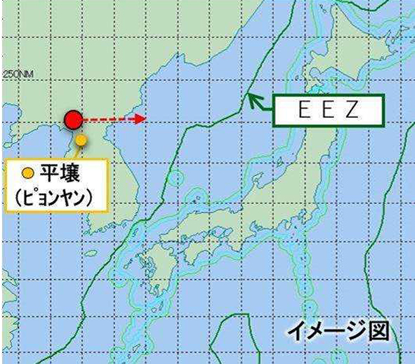 北による弾道ミサイル発射、日本EEZ外へ落下