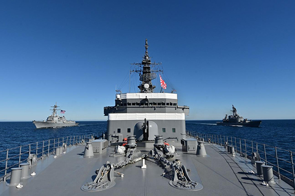 海上自衛隊は10月21日、「令和7年度遠洋練習航海部隊」が米海軍と共同訓練を実…