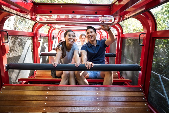 3つの乗り物を使い、ブルー・マウンテンズの絶景をいくつものアングルで楽しめる。シーニック・レイルウェイは世界で最も急勾配の鉄道としてギネス登録されており、最大52度の急角度で谷下の森に降りていく。ケーブルウェイは空中散歩の感覚でスリー・シスターズなどの景色を楽しめる。スカイウェイは森の上空270mを移動しながら眺望を楽しめるだけでなく、ハーネスを付けてハッチから外屋根へ出て、遮るものなく絶景を満喫できる「ビヨンド・スカイウェイ」プランもある。