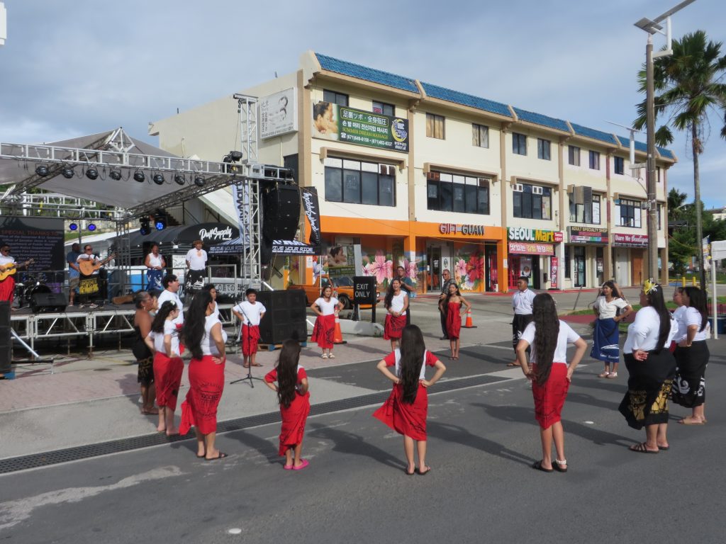 特設ステージでは、チャモロダンスチームによるチャントで幕を開け、ローカルの人気アーティストによるライブパフォーマンスが21時まで続いたほか、デュシットプレイス周辺のレストランでは、「タモンナイトマーケット」用の特別メニューの販売を用意するところもあり、エリア一体が賑わいを見せた。